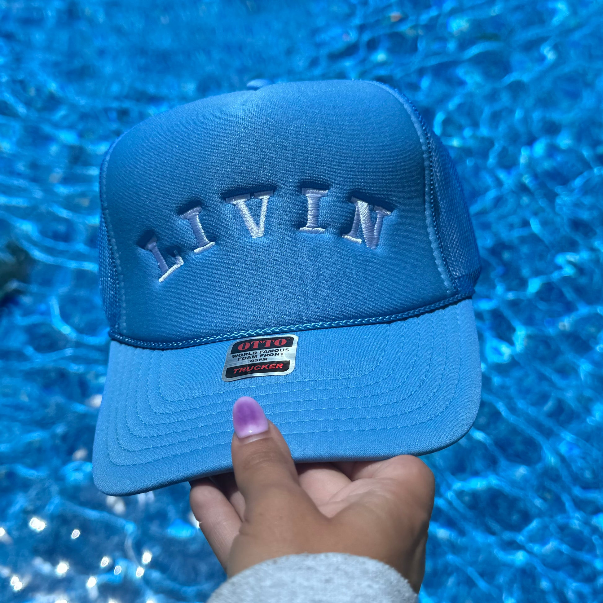 The LIVIN Trucker Hat is your new sunny day essential—featuring bold embroidered lettering on a foam front and breathable mesh back. Comes in bubblegum pink, ocean blue, and neutral tan to match your every mood (and outfit). Whether you’re beach-bound, hitting the road, or just vibing through town, this hat is a whole lifestyle.